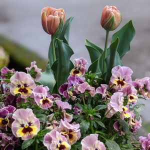 チューリップ🌷 ラベルエポック チューリップらしくないこのお色が好きで🥰昨年に引き続き今年もお迎えしました😊 シックなアプリコットブラウン、いいですね〜🤩