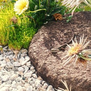 庭で花の手入れをしていると、どこからとなもなく現れて日光浴をしています。 自分以外にもカナヘビやヤモリなど庭の草花を住み家として気に入ってくれている生き物がいるって嬉しいです。庭仕事をしているとホッコリします♪
