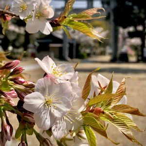 お疲れ様です♡︎ʾʾ 源平花桃がキレイな神社で咲いてました ‧₊*🌸.˚*。✧ 優しい癒し系かな💗