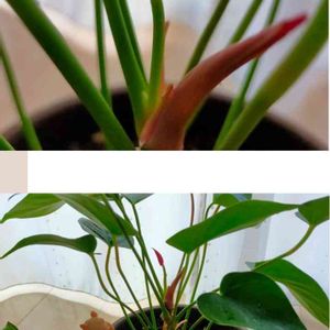 💚アンスリウム🩷 お迎えして暫くして気が付きました( 'ω')エッ…😳 鉢に4つポット植えになってる〜(⊙⊙)!!🤦♀️ 鉢を2つにして植え替えました🩷💚ひ ①新葉、お花も伸びて来ました🌿🩷 ②3つの苗の鉢 ③1つの苗の鉢 元気に育って欲しいなぁ〜🤗🩷💚