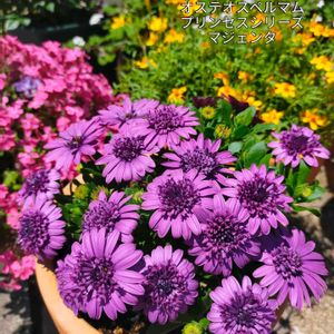 今日はあいにくの雨だったので、投稿しそびれていたお花たちの写真を集めました☺️ ①『オステオスペルマム プリンセスシリーズ マジェンタ』 お迎え時鉢がなくてプラ鉢に仮植えしたときはあまりキレイに咲かなかったのですが、テラコッタ鉢に植え替えたらとてもキレイに咲くようになりました💖 通気性って大事ですね✨ ②『モンローウォーク シルキーラテ 』 二年目のシルキーラテ、元気です❣️ +++以下種まきっ子の記録+++ ③『ラグラスオバタス 』 めちゃくちゃ触り心地の良い穂✨ とてもカワイイ〜・・・と、思っていましたが、猫じゃらしに似てますよね😅 ④『種まきストック 』 アプリコットの種をまいたのですが・・・どう見てもピンクですよね🤔 ⑤ライラック色はちゃんとライラックでした ストック苗はそれぞれの色を5つずつ作ったのですが、ほとんどが一重でした 最後に咲いた一つだけ八重😂 でも、一重もカワイイです💖