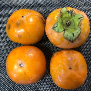 カキ 柿の実 今年の初物❣️義兄が畑で収穫😍 もう色づいたの?早いなぁ、まだ八月よ‼️と思って昨年の投稿をみたら、なんと8.29同じ日に柿の実を投稿してました😄 おはようございます♪♬ 今日もいいことありますよ〜✨☀️✨☀️🤗