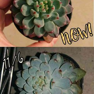 いい肉の日&200枚目は 今こっそり見守ってる月兎耳さん。 5月6日… 放置され隅っこでこっそり居てた白牡丹との寄せ植えミニ鉢で 枯れに枯れて3ミリの毛玉…成長点のみになっていた葉っぱなのか毛なのかよくわからん物体が ここまで育ちましたww 11月なってから茶色い縁取りついてきて ちゃんと育ったなー って嬉しく見守っていますw