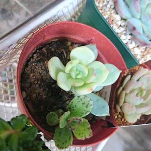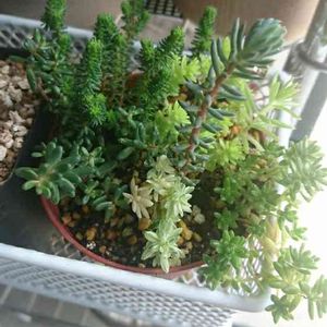 セダム系、買った時ポットの横に生えてた1センチくらいのとか、 客の扱いがぞんざいで折れて地面に転がってた可哀想な頭とかそういうの寄せ集めてたら育って育ってもっこもこに。