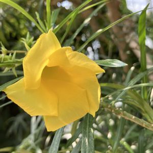 おはようございます♪ ♡今日のお花♡キョウチクトウ♡ 💛黄花夾竹桃(キバナキョウチクトウ)💛 キョウチクトウ科キバナキョウチクトウ属 ペルー等熱帯アメリカ原産 開花7〜10月 開ききらない漏斗状の五弁花を咲かせます 樹木全体が有毒