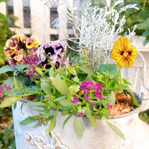 ❊❊ビオラ寄植え❊❊ 前の寄植え解体⇒植替え のための時間が取れずに、しばらく待機していたビオラ達。 昨日、やっと完成させられました♪ シロタエギクは、去年のもの。 ちょっとバランス悪いけど、背景として活躍してもらいます!