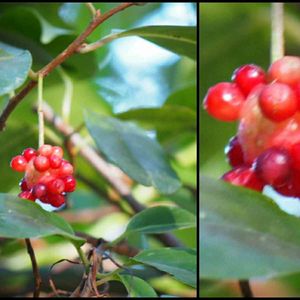 サネカズラの可愛い実。小鳥のおやつになったのか花托が覗いている。 種は何処に運ばれて行ったのかな?🎶
