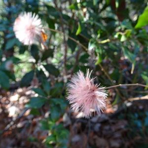 冬の山道でコウヤボウキのピンクの綿毛は花が咲いたよう♪