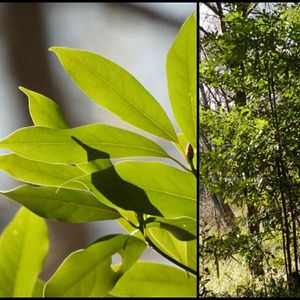 枯れ木立の中で陽を浴びて鮮やかな緑が綺麗でした。 タブノキと教えて戴きました😃