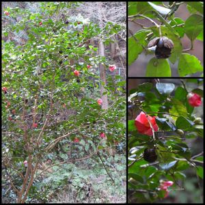 椿でしょうか、沢沿いの岩場に根を下ろし美しい姿で立っていました。