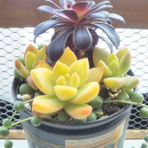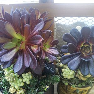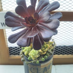 作製して1ヶ月半ほど経った黒法師をメインにした寄せ植え! 短期間の黒法師の成長にびっくりしています😲 アエオニウムを育てるのが初めてなのに、寄せ植えなんかにしてしまって大丈夫だったかなぁ…💦 今は午後から陽が当たる玄関に置いているんですが、昨日夕方なんとなく葉が閉じていました。初めて見る姿だったので驚いて、昨日の暑さは黒法師には暑すぎる❓と心配になりました。 黒法師の夏の管理や、いずれチョンパ✂したいのですが適した季節など、詳しい方に是非教えてください🙏 「黒法師寄せNEWS」タグで過去の姿も見られます!