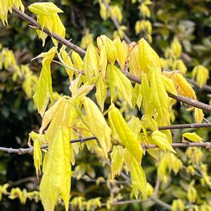 トウカエデ 花散る里✨昨年に引き続き新芽の白〜薄いピンクをほとんど見る事なく黄色い葉っぱが展開し始めました💛💛昨年はいきなり黄緑色の新芽だったので💚🌿少しはましかな?
