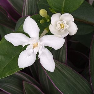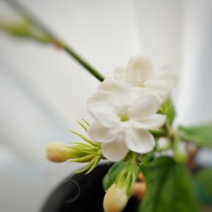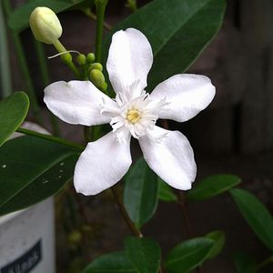 『ジャスミン:エンジェルウイング』 花言葉 「誘惑」 香りのよさ、花の美しさで人気のジャスミン。エンジェルウイングは、ニューギニア北方のアドミラルティー諸島原産のつる性低木。葉は革質で光沢があり、白い花には強い芳香があります。和名はオオシロソケイ、スタージャスミンです。香水の原料に利用されます。 小さな苗🌱から育てたお花🥰 昔は、こんな元気もあったんだなぁ〜🤔 1つしかまだ咲いてなかったけれど、、。 良い香りがした事は、記憶している🤩