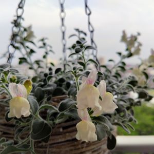 キンギョソウアールグレイ どんより梅雨空に元気に花をつけてくれてお気に入りです。 横に這って育ってほしくて立ち上がる子は少しずつカットして様子みています。 今までぶら下げていて強風に負けずに育ってくれている子がいなかったのでこの子はほんとに丈夫です😊 ありがとう✨✨ 私もがんばろう、と思います😆
