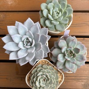 時期的に遅いですが、植え替えをしています😅 鉢を使い回したくて、この株を植え替えたらこの鉢をこっちに使って…とあれこれ考えてしていると時間がかかります。 また、鉢は洗って念のため塩素系漂白剤で消毒して使っています…これもめんどくさい…😅 いっそまとめて新しいものを購入しようかとも思いますが、近くのお店では手に入らないのと鉢が増えすぎるので…😅 遅いかな〜と思いつつ時間がある時に頑張ります😅 1枚目の左⬅️のエケベリアはおまけでいただいた謎ベリアです☺️ 粉が厚くて(ラウイ並み)トロムソに似ているような…何でしょうね😆 2枚目の雪だるまは多肉永遠さんの苗ですが、モンブランと瓜二つです😅花もほぼ同じでした…🤣