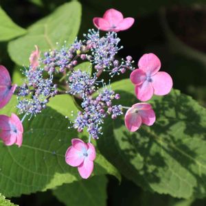山紫陽花が咲き始めました 良いお天気です 花の影が影絵のように葉っぱに*・゜゚・*