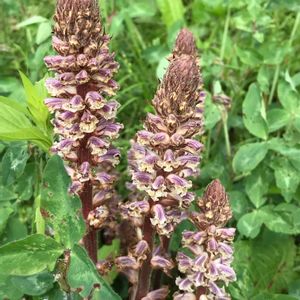 ヤセウツボです。 自然大好き派です😘。一瞬、ランの仲間かと思いましたがハマウツボ科でしたー😅。ハマウツボは全国的に減少していますが、こちらは外来種で全国的に生息域を拡大中です。 葉っぱは無く典型的な寄生植物です。可哀想な宿主はマメ科の皆さんで、写真の下部に写っています😅。花だけ見ればまあまあ見れるような気がします😊。