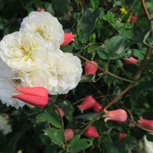 ミニバラ グリーンアイス🤍 クレマチス テキセンシス❤️ 他のバラに押されて。。ちょっと寂しそうかな😅 56