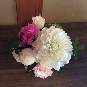 ダリアがメインのテーブルフラワー。 和室にも合うのが素敵です。