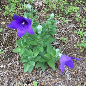 矮性のキキョウ「ポップスター」が咲き始めました。去年秋にホームセンターで買い、ポット苗のまま放置していたのをこの春地植えしました。白花も同時に植えたのですが、そちらは他の植物の陰になっていて、徒長してるし、いくつかの蕾は虫に食べられちゃったし、残りの蕾もまだ固い。元々日当たりがあまり良くないうちの庭は、なかなか上手くいきません。