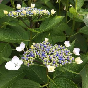 ガクアジサイが咲き始めました。昔母が植えたもの。もっと華やかなアジサイに植え変えたいと思っていましが、これもアリだなと思う今日この頃。