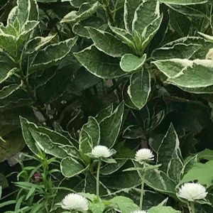 花が終わっても 斑入りの葉が涼しげです 千日紅の白花と…