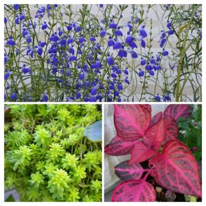①ショッキングブルー 秋に1番綺麗に咲いてくれる😍 良い香り〜 ②そろそろ終わりそうなブルーサルビアと今年初めて植えたコキア やっぱりコキアってかわいい🩷