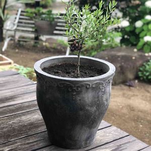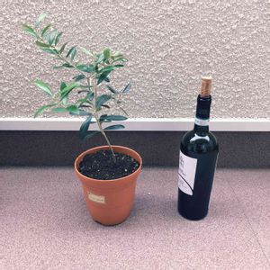 ①オリーブの実が成りました。幾つ見えますか? ②オリーブの鉢の左下の小さな鉢には何の葉が出ているのでしょう? 答え ①ー3つ ②ー夫が拾ってきたドングリの実から芽が出てきました。地植えをしたい、と言っていましたが、断りました😆 オリーブは自家受粉しづらいようですが、二軒隣のお宅にも有り、風か虫さんの助けを借りられたのでは…? 実は熟すと黒くなり、去年は1つ黒くなりました🎶 ちなみに、オリーブオイルはグリーンの実から作られるそうです。