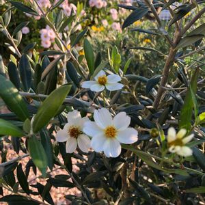 こんにちは😃 久しぶりにゆっくりとガーデニングです❣️ 我が家のオリーブは1年で少し大きくなりましたが、横のウィンターコスモスの株が大きくなりすぎて、目立たないです😆 ちょっと横に倒れたコスモスとオリーブのコラボpicです🎶