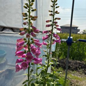 ①ハウスの南側のジギタリス ②ハウスの南側のオルレアちゃん ③家の裏でユキノシタがたくさん咲いてます🤗 ④⑤は、ピンクの一重大花カスミ草