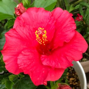 おはようございます😊 今日のハイビスカスは似てるけど違う種類ですよ。 お屋根のある所にいるので雨でも綺麗に咲いてくれています。