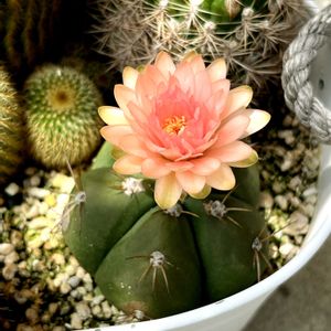4、5年前に買ったサボテンです。 初めて咲きました。 薄いピンクが可愛いです。