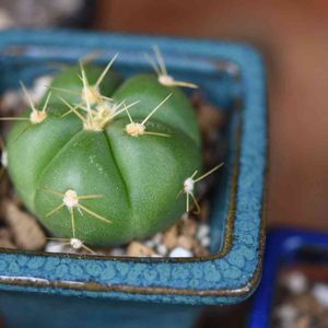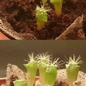 7/3 思えば発芽以来2ヶ月が過ぎた。 なんか少し薄べったい感じだったけど、最近ようやく膨らんできた感がある。 棘もだいぶ伸びたし。 もう暫くしたら植え替えようかな。