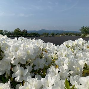 真っ白なつつじがモコモコです。 ぐるっと白一色できれい🤍 向こうに見えるのは多良岳