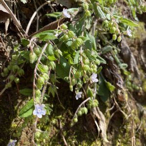 ヤマルリソウ(山瑠璃草) 久しぶりに朝から青空の昨日 出会いを求めて〜 寒くて深い森 沢の水音、鶯の声 誰か分からない鳥の鳴き声以外は 静かな世界 岩肌に可愛らしい花 ヤマルリソウです。 ここで出会えるなんて、 なんてラッキー🍀 山肌の斜面が好き、って本当だ、 だから崩れて流される事が多い、ということに納得。 厳しい場所を選んで咲く花、日本固有種