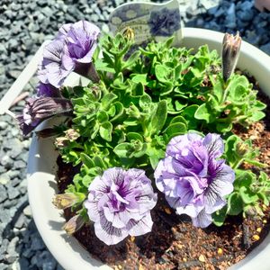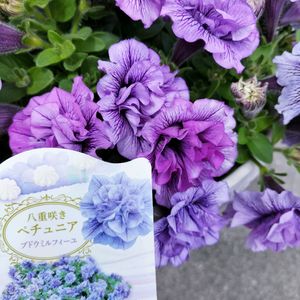 今日のお花💜ペチュニア 「ブドウミルフィーユ🍇」 母と買い物へ行った時に、豪華で 美味しそうな名前に見とれていたら、 母がカゴに入れて買ってくれました。 まるで、小学生に戻った瞬間でした👧