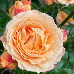 本日2枚目です♡ スィートジュリエット🌹 今年はモッコクの木に誘引して 小さなつるバラのように仕立てたので 花数が増えて素敵に咲いてくれています🥰 とっておきの美人さんを💕📸しました💓 アプリコット色が素敵なスィジュリさんです🌹 今日もゆるりご訪問になります🙇♀️
