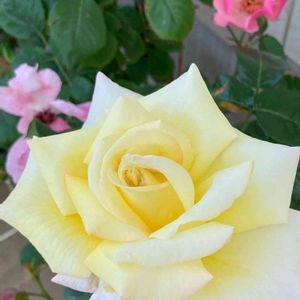 バラ ピース (世界平和を願って名付けられた🥀) クリームイエローで大きく💛 お庭で初開花✧︎.:* 昨年の秋にHCで出会ってしまい。。.+*:゚+。.☆ お連れしてしまいましたꉂ(ˊᗜˋ*) まだまだ✧︎楽しめそうです〜 今日は久しぶりに友人とランチに出かけて来ました🥞🫖𓂃 𓈒𓏸 今日もあっという間の時間に^^; お疲れさまでした☺️