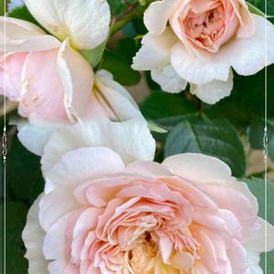 おはようございます😊 バラ エミリーブロンテ イエローがかったアプリコットピンク色 ロマンチックに開花してます(*ˊᵕˋ*)੭ 病気に強く優秀ですね 花付き良くてどの子も変わらず素敵に咲いてくれてます 🥰 今週もよろしくお願いします🎶