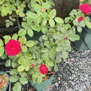 6月5日 (木) おはようございます☀ カラッとした晴れで午前中は、過ごしやすい気温ですが、午後からは、 暑くなりそうです😅 二番花 🌹ローズポンパドゥール たくさんの開いて来ました🎶 🌹オデュッセイア 蕾もたくさんです✨ 軒下組さんは、綺麗な葉っぱですが それ以外は、黒点病で葉っぱ汚いです💦