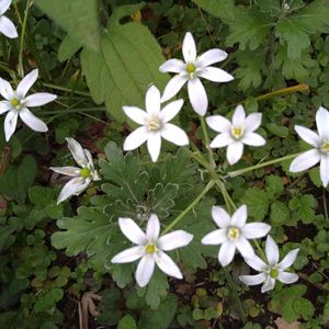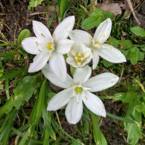 オオアマナ (オオニソガラム) こんな所に密かに 咲いていたなんて! 今年は花壇の近くに めっきり少なくなったなぁ… と思っていたら、そこから 5メートル位南側に 一ヶ所にだけ咲いていました! 🌱🤍🌱🤍🌱 種?球根?が 飛んでいったのかなぁ…