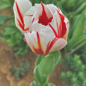 雨風に負けなかった強い子 うちのチューリップ 子供ちゃん出てきました パリダムは背が伸びて花芽が ニゲラは去年の秋からずっと生き延びて 去年咲いた子達より太い茎になってます