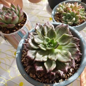 可愛くて可愛くて何回も投稿しちゃいます。笑 この薄い色合いが好きで購入しました(´ー`) ちょっとホワイト斑っぽくて可愛いのです♩ 植え替え時に取れた葉に子供たちが育って来てますが、 斑入ってるかな…楽しみです(*´꒳`*)