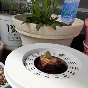 2月18日 アマリリス ピコティー 初挑戦のアマリリス 芽が出てから少なめに水やりするように説明書にあったけど 土を替えて古い根を取り除いて水やりしてしまいました
