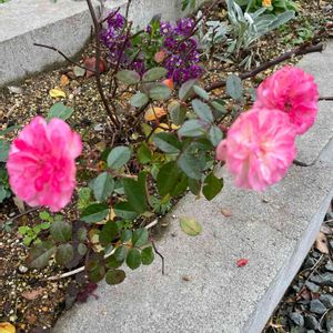 ななちちさんに頂いた子の孫🤣 花壇のミニバラ グリーンアイス🌹 半分剪定したけど咲いてるので切れない💦 寒さのせいか濃いピンクです。