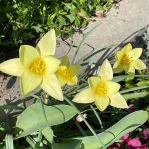 植えっぱなしの原種チューリップも咲いて来ました🌷 日陰の花壇なので咲くのが遅かったですが、長持ちしてくれるといいなぁ😁