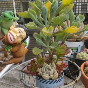🏷️ハマダの日 🏷️棒の日 しのんさんの…… ブランコ🐸の使い方をパクってみた…… しのんさんの様に🐸の足に乗っけられなかったので、ハマダを足で挟む🤣🤣🤣🤣🤣 ハマダの使い方のレパートリー増えたわ🤣🤣🤣🤣🤣 🌵添え多肉✨は…… わたしの中では棒多肉な セキネオ属 #マサイの矢尻 陽に当てすぎて黄色くなってしまったような気がする……🥺💦 足元に適当に植えた エケ(多分ローラ?)と 義経の舞もいい感じに根付いてる🤣🤣🤣 二枚目は…… rinrin♪さんから頂いた #チューリップ あけぼの 我が家で2回目の花を咲かせようとしてる😳💕 これは見なきゃ!と チクチク沢庵(いや?🍌か?)と沢庵ピータンを抱えて🐒が見に来た図🤣🤣🤣