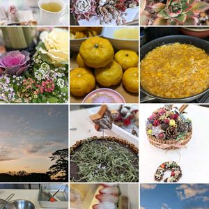 Googleフォトが「豊田市1年前」と題してコラージュしてくれました🍀😊✨2023年1月🌇夕焼け🌲大木~♬♬ ハーブ教室🌿「おうち薬膳」講座、トロッケンクランツ講座で🎂クリスマスケーキ•*¨*•.¸¸♬Merry Christmas•*¨*•.¸¸