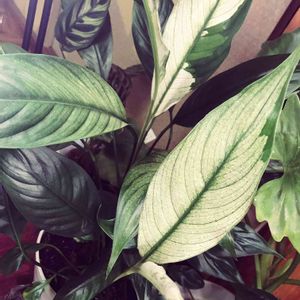 お気に入りの斑入りのスパティフィラムさん。 一つとして同じ葉っぱがなく、個性豊かなところが大好き。 新芽が沢山出て、すでに鉢が小さくなってきたから一回り大きな鉢に植え替えるべきか思案中。
