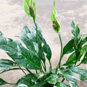 お客さんに頂いた斑入りスパティフィラム☆ 斑入りというより、緑入りというような… しっとり涼やか上品な雰囲気♡